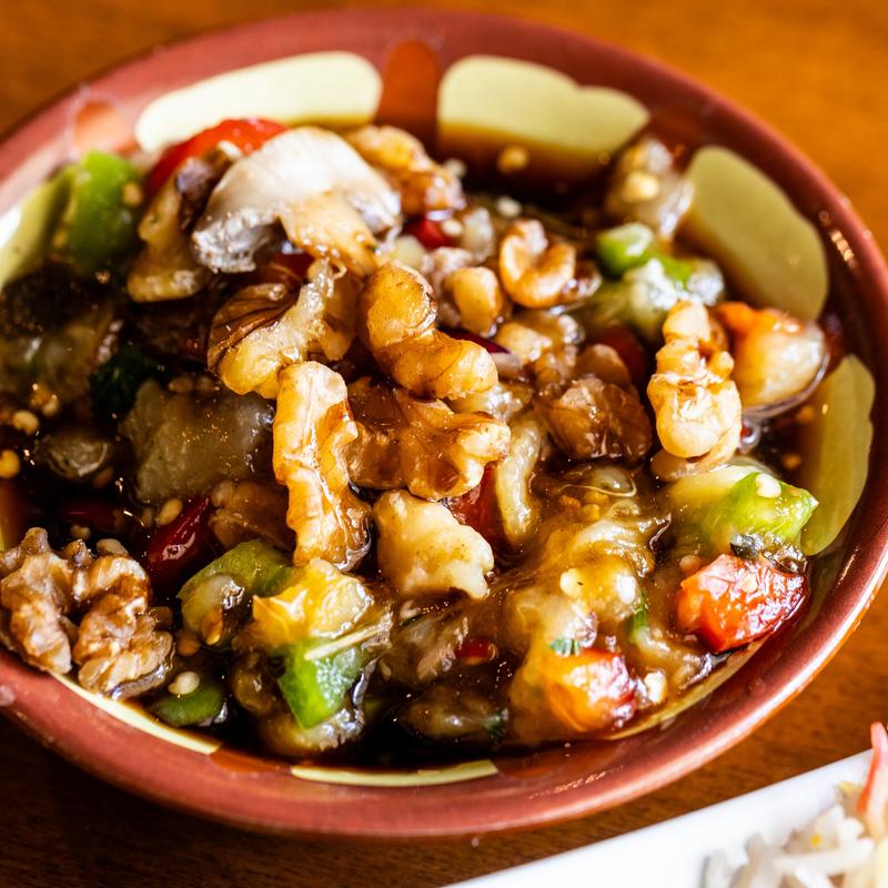 Serves 5 people | A mix of salmon & jumbo shrimp served over our famous biryani rice.